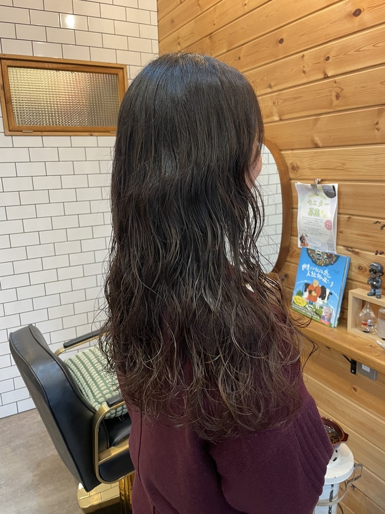 前のデジパーって100℃くらいの高温でやってたんだけど今は半分の50℃前後のやるから髪への負担はかなり軽減されていて、薬剤がクリーム状だから毛先と中間で塗り分けができるからダメージを負いがちは毛先には優しい薬剤でアプローチできます。
